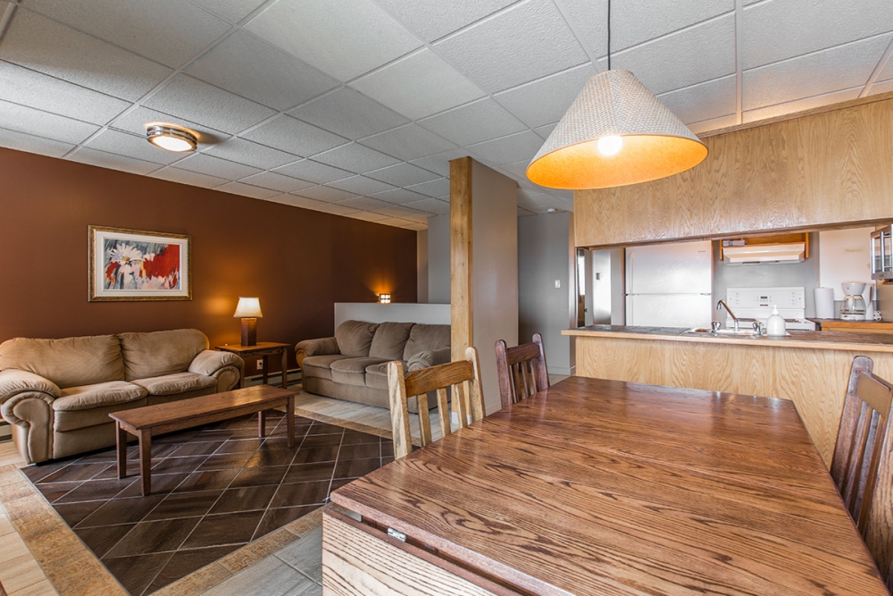 Vous avez un événement spécial dans la région et vous devez loger plusieurs personnes à petits prix ? Réservez l’un de nos vastes appartements de trois chambres. Vous y trouverez tout le nécessaire pour vivre en complète autonomie, dont une cuisine complète incluant même un lave-vaisselle.